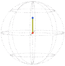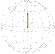 For example, a simple rotation about the vertical by π / 2 (90°) that starts from the reference position (zero) is represented in position space by a radial line segment. The orange dot is at the starting position, the blue dot is at the ending position: