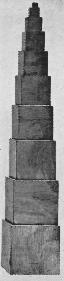 Exercises in Arithmetic. At this point, repeating the sense exercises, we present the Long Stair with a different aim from that with which it has been used up to this time. We have the child count the different pieces, according to the blue and red sections, beginning with the rod consisting of one section and continuing through that composed of ten sections. We continue such exercises and give other more complicated ones.