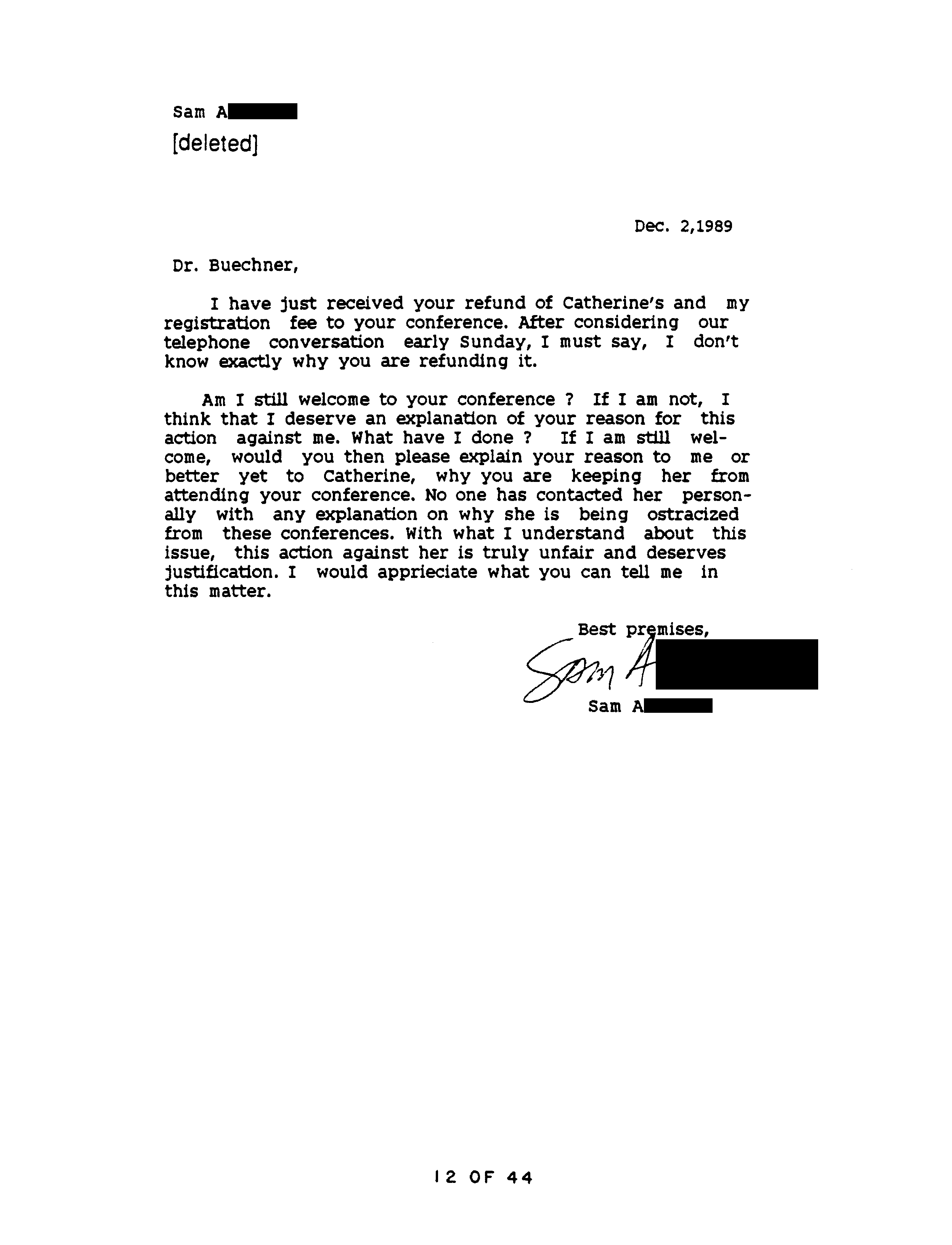 For readability the headers that were on pages 14 - 21, 23 - 30 (“Dr. Buechner, 3/6/90”) and on page 32 (“The Reismans, 3/6/90”) have been silently erased and placed in our blue header.